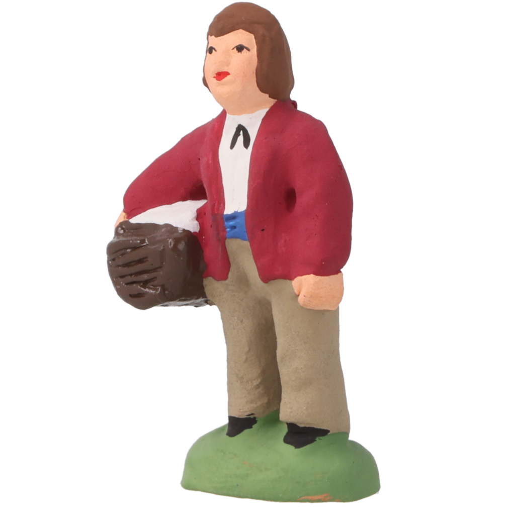 Ce santon représente un jeune père tenant un couffin, symbole des premiers instants de la paternité. Par son allure paisible et son geste plein de douceur, il exprime l’émotion simple et universelle d’un homme accueillant la naissance d’un enfant.