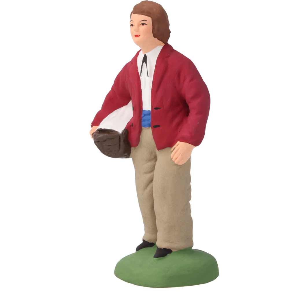 Les détails de sa tenue — veste rouge, gilet clair et ceinture bleue — rappellent la délicatesse du travail des ateliers Marcel Carbonel, où chaque figurine est modelée et peinte à la main.