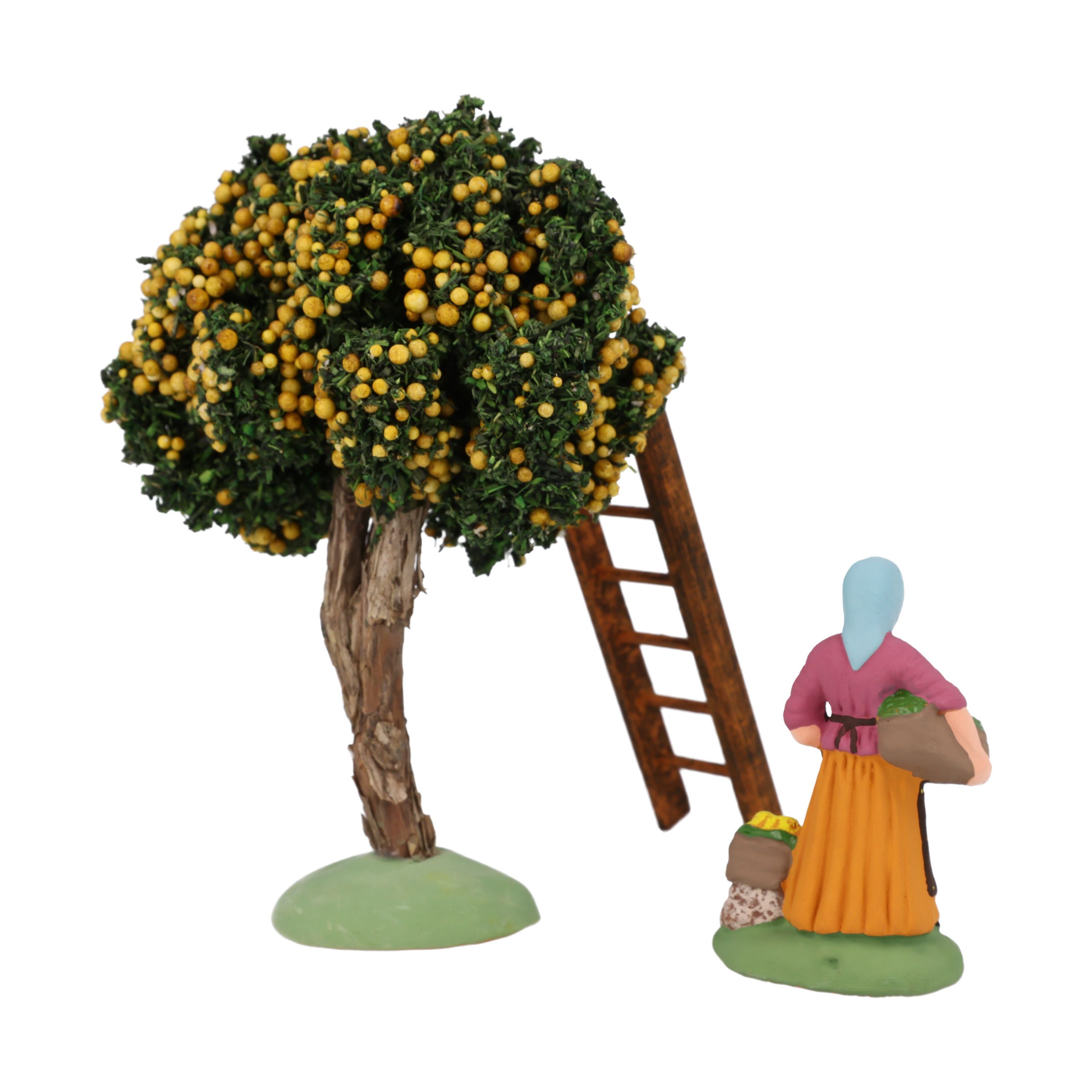 Les tailles de référence de chaque N° correspondent à la hauteur d'un personnage adulte debout. Les autres sujets (animaux, enfants, accessoires) ont des tailles proportionnelles. Les numéros des Maisons et des Accessoires correspondent aux N° des santons. Certains accessoires sont adaptés en réduction pour les arrière-plans (ex : les moulins, les villages).