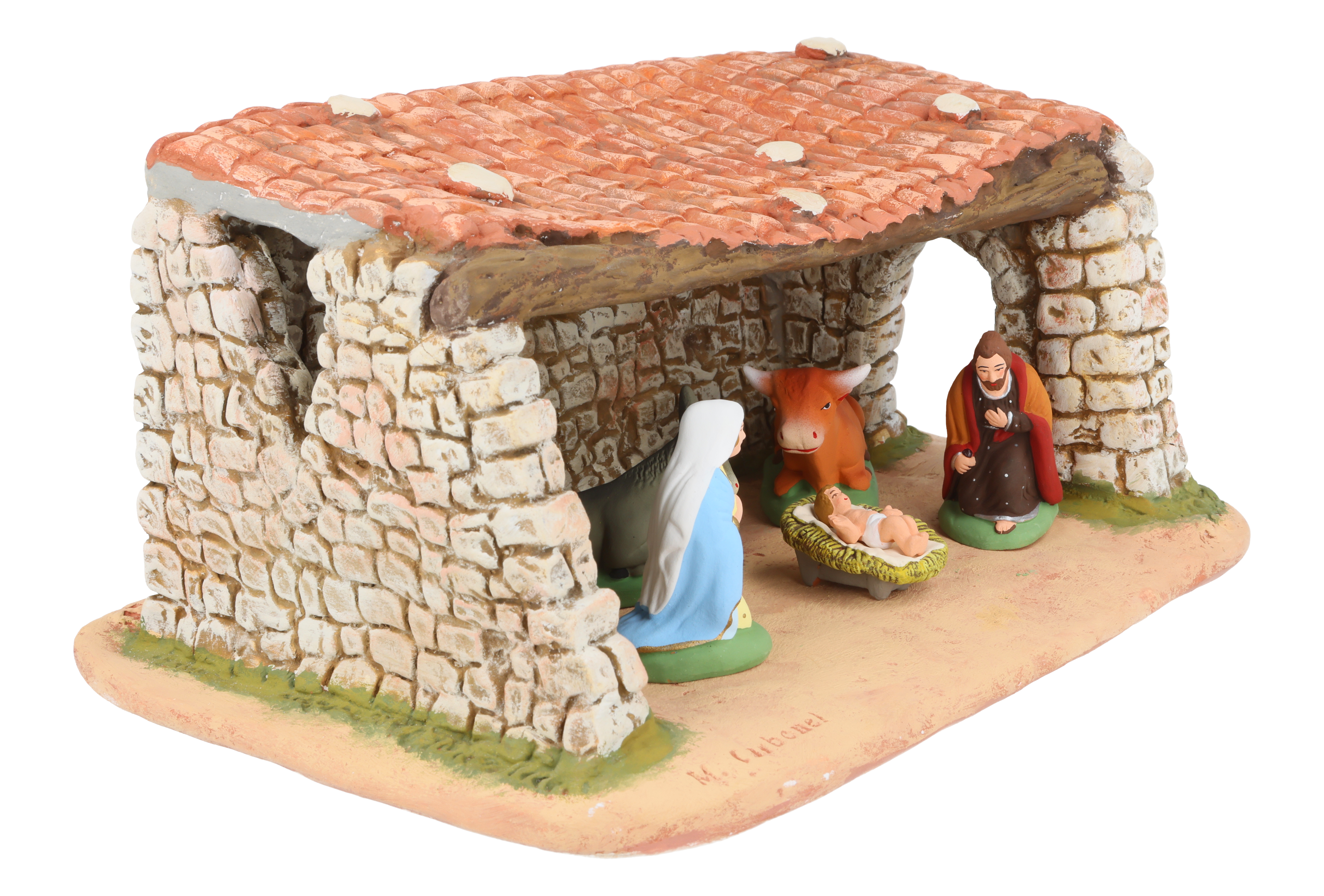 Boutique en ligne > Coffrets de santons > Etable en pierres du Luberon N°2 + Nativité (Jésus et Berceau séparés) N°2