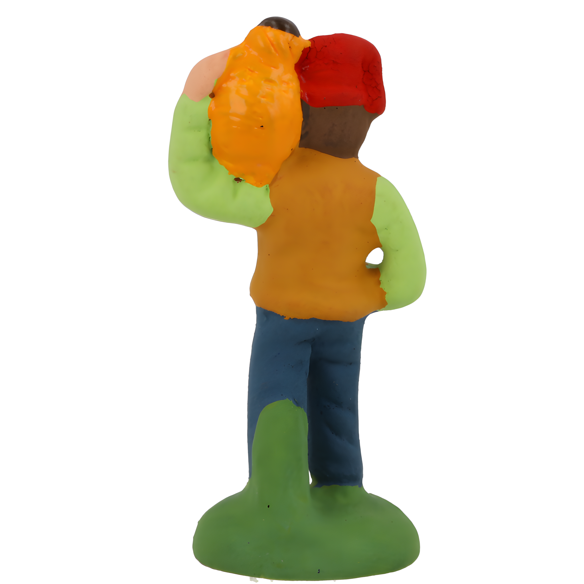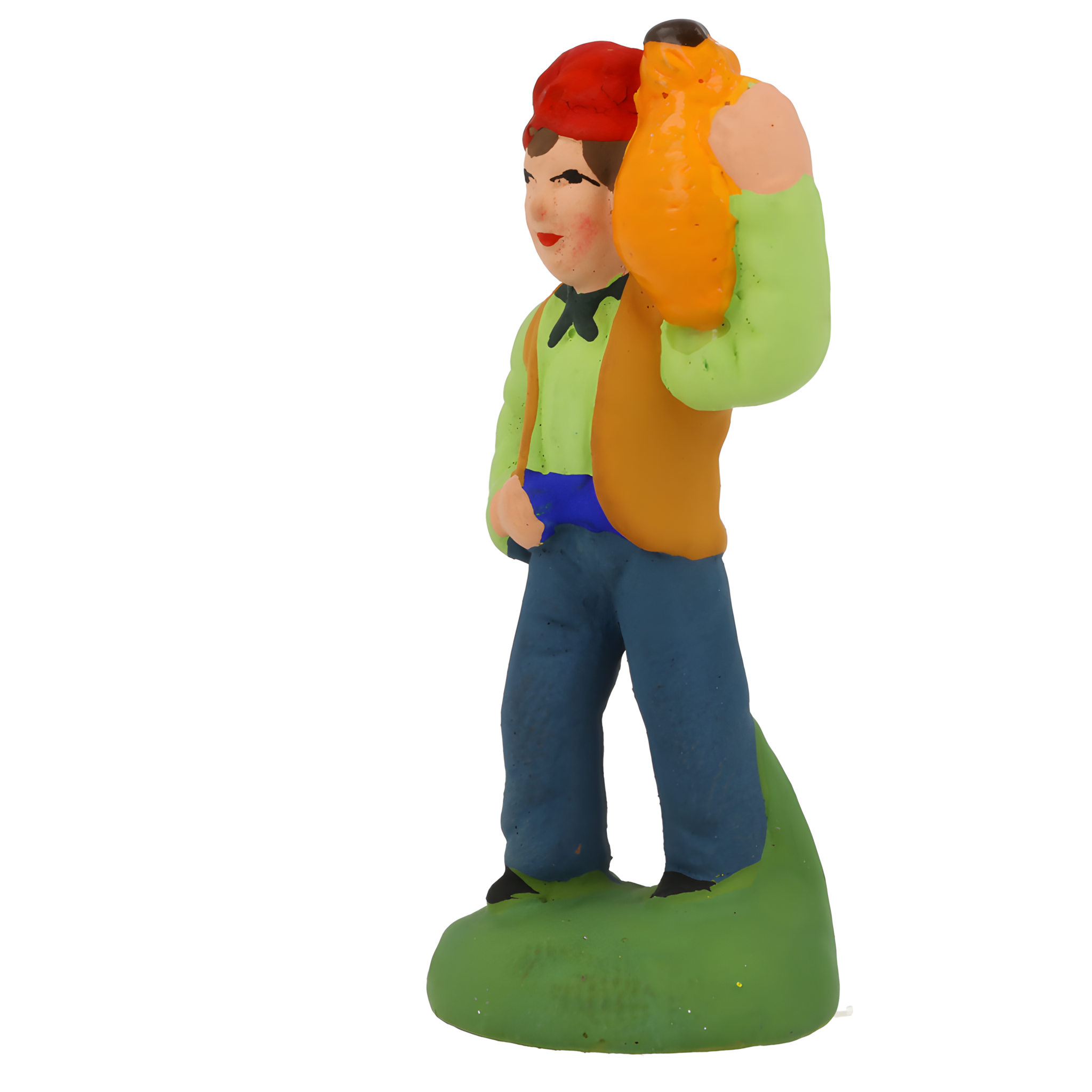 Paysan qui a préparé lui-même son vin cuit (jus de raisin réduit au feu et mis à fermenter). Cette boisson est servie traditionnellement au cours des repas de fête et notamment avec les treize desserts provençaux de Noël. L'homme porte sur son épaule une grande bonbonne de vin en verre, protégée par de l'osier tressé. Les treize desserts de Noël représentent les douze apôtres et Jésus. Ils sont composés de : la pompe, le nougat blanc et noir, les figues sèches, le raisin sec, les amandes, les noix et noisettes, les poires, les pommes, les dattes, les pruneaux, les oranges, les mandarines, les sorbes flétries (baies rouges du sorbier).