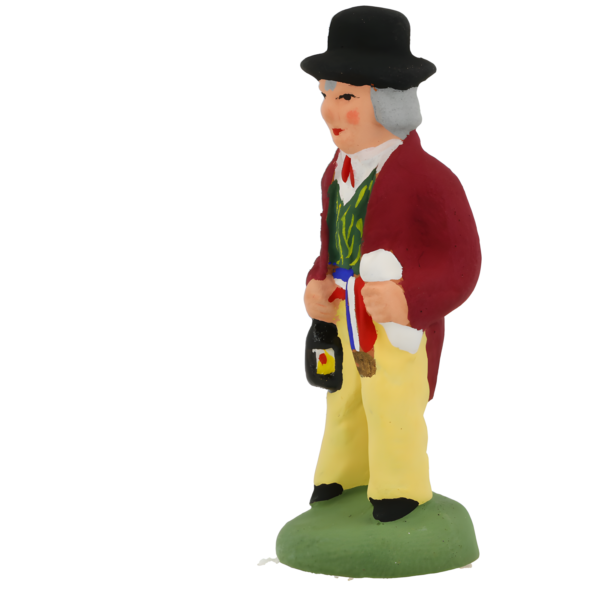 Personnalité qui dirige le Conseil municipal d'une ville. Il est le seul notable présent dans la crèche, composée généralement de personnages modestes. Son costume est caractéristique de sa fonction : un chapeau haut de forme en feutre gris, une veste redingote, une écharpe tricolore nouée autour de la taille. II tient un parapluie rouge, marque de respectabilité et de prospérité en Provence. Il porte également dans l'autre main une lanterne pour éclairer ses pas.