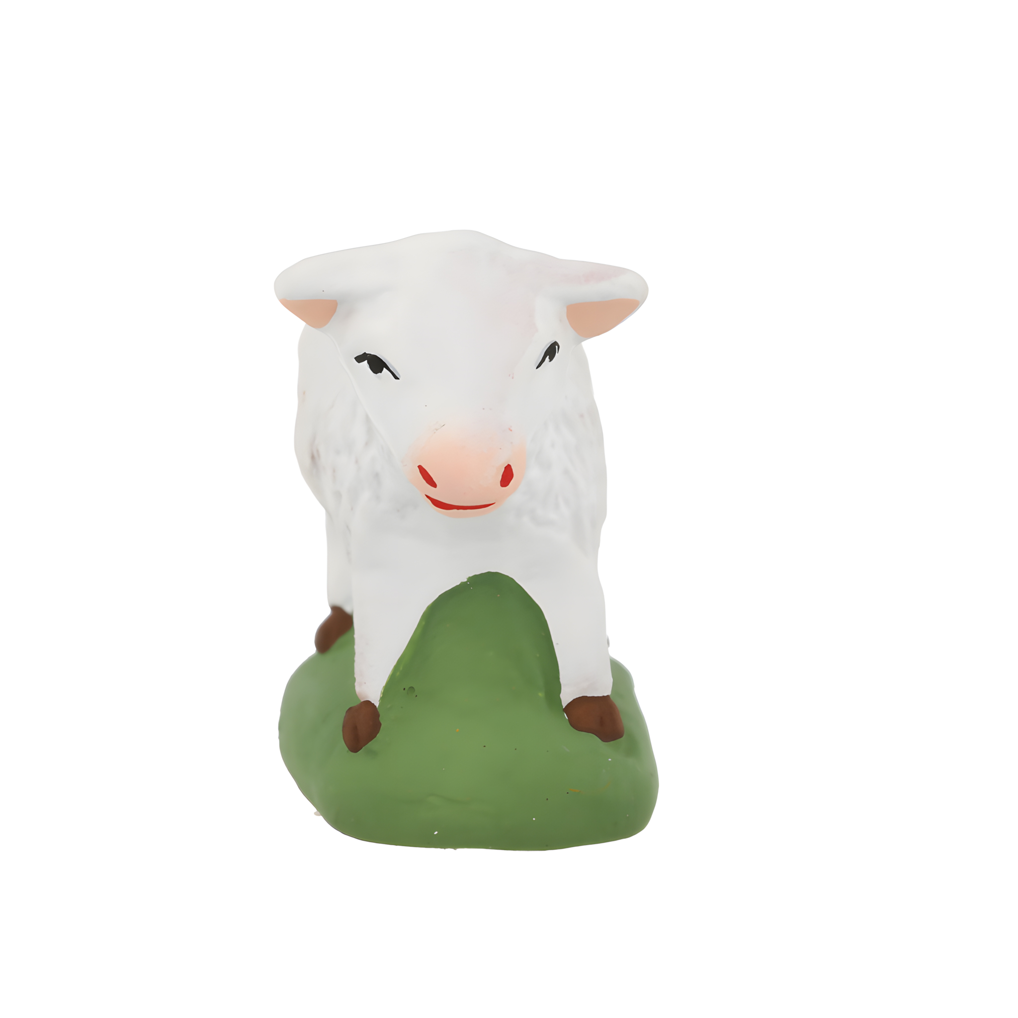 Animaux familiers de la crèche. Outre le bœuf et l’âne, d’autres animaux animent la crèche provençale. Marcel Carbonel a ainsi représenté : Les moutons Symbole de l’innocence, ils ont été conduits par les bergers durant la transhumance. L’agneau est souvent apporté en offrande à l’enfant Jésus, mais sans risque de sacrifice sanglant. Les chèvres De trois couleurs : brunes, grises et blanches. Elles rappellent la légende païenne de la “chèvre d’or”. Une clochette autour du cou, elles suivent leur maîtresse le long des petits chemins serpentés et caillouteux. Les lapins Ils sont couchés ou dressés sur leurs pattes arrière. Le chien du berger Fidèle compagnon, efficace conducteur et gardien du troupeau, une clochette est suspendue à son cou. Les canards, oies, poussins, cochons et chats, poules et coqs Ils font partie des animaux de la basse-cour. Plus ils sont nombreux et plus la ferme est animée. Les pigeons Ils doivent être placés sur les toits du mas et des maisons du village.