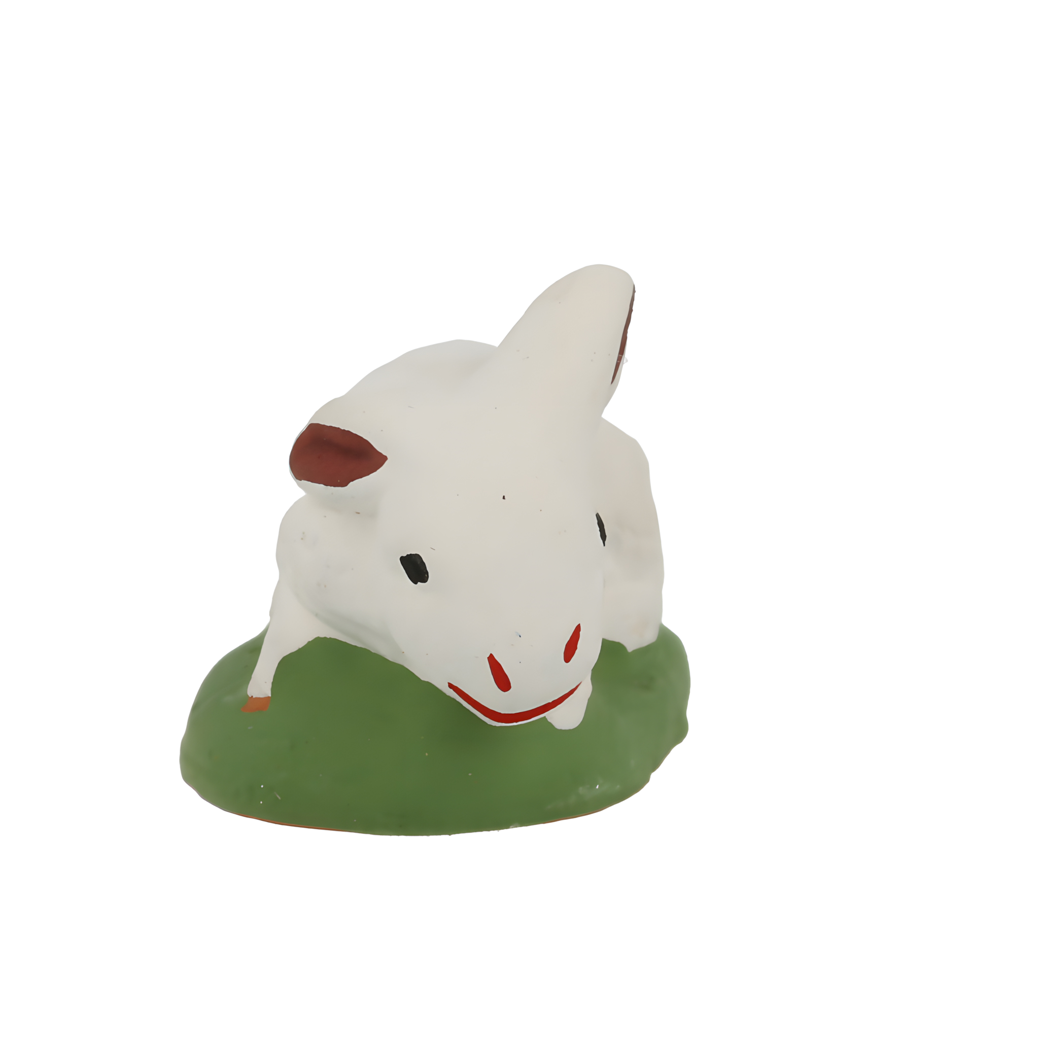 Animaux familiers de la crèche. Outre le bœuf et l’âne, d’autres animaux animent la crèche provençale. Marcel Carbonel a ainsi représenté : Les moutons Symbole de l’innocence, ils ont été conduits par les bergers durant la transhumance. L’agneau est souvent apporté en offrande à l’enfant Jésus, mais sans risque de sacrifice sanglant. Les chèvres De trois couleurs : brunes, grises et blanches. Elles rappellent la légende païenne de la “chèvre d’or”. Une clochette autour du cou, elles suivent leur maîtresse le long des petits chemins serpentés et caillouteux. Les lapins Ils sont couchés ou dressés sur leurs pattes arrière. Le chien du berger Fidèle compagnon, efficace conducteur et gardien du troupeau, une clochette est suspendue à son cou. Les canards, oies, poussins, cochons et chats, poules et coqs Ils font partie des animaux de la basse-cour. Plus ils sont nombreux et plus la ferme est animée. Les pigeons Ils doivent être placés sur les toits du mas et des maisons du village.