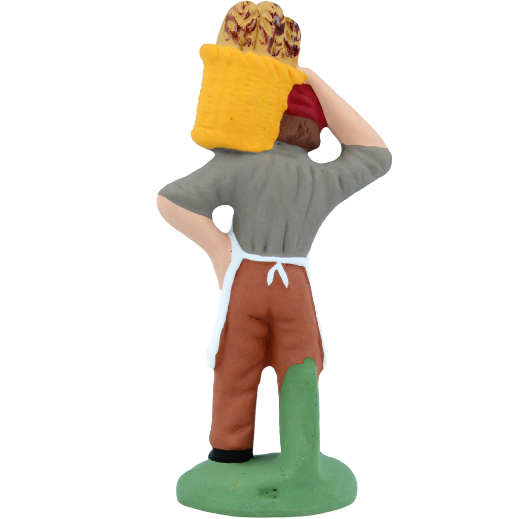 Artisan qui fabrique et vend du pain. Il porte sur l’épaule un grand panier rempli de pains de toutes sortes. Un large tablier lui enserre les reins. Légèrement courbé, il descend du village pour se rendre à l’étable. On fabrique différentes sortes de pains en Provence : la banette (petite flûte), la fougasse (pain rond à croûte morcelée), pain fendu (miche ovale fendue au milieu), le pain calendal (une croix est tracée sur le dessus et il ne se fait qu’à la période de Noêl), le pain rond de campagne.