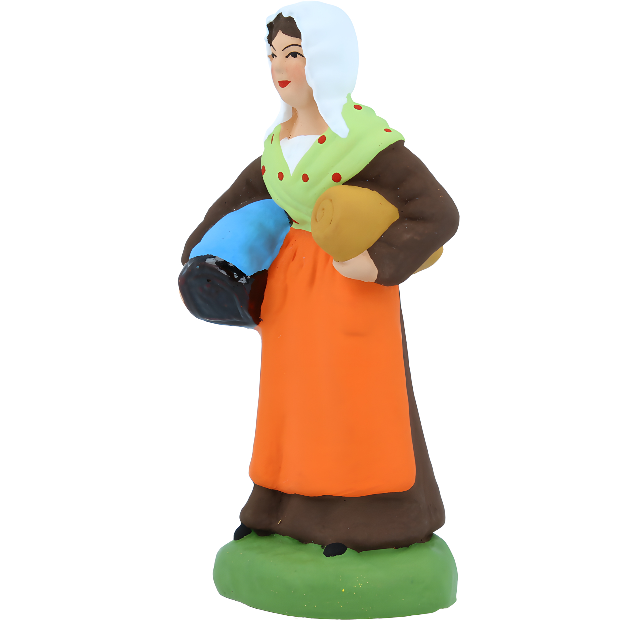 Sage-femme, respectée pour son dévouement et son expérience. Ce personnage sa rapproche de la "Femme au bébé". Toutes les deux se complètent et doivent figurer ensemble dans chaque crèche provençale. Elle est coiffée d'un bonnet en lingerie blanche à brides et porte sous un bras une couverture en laine et sous l'autre, un berceau en bois d'olivier.