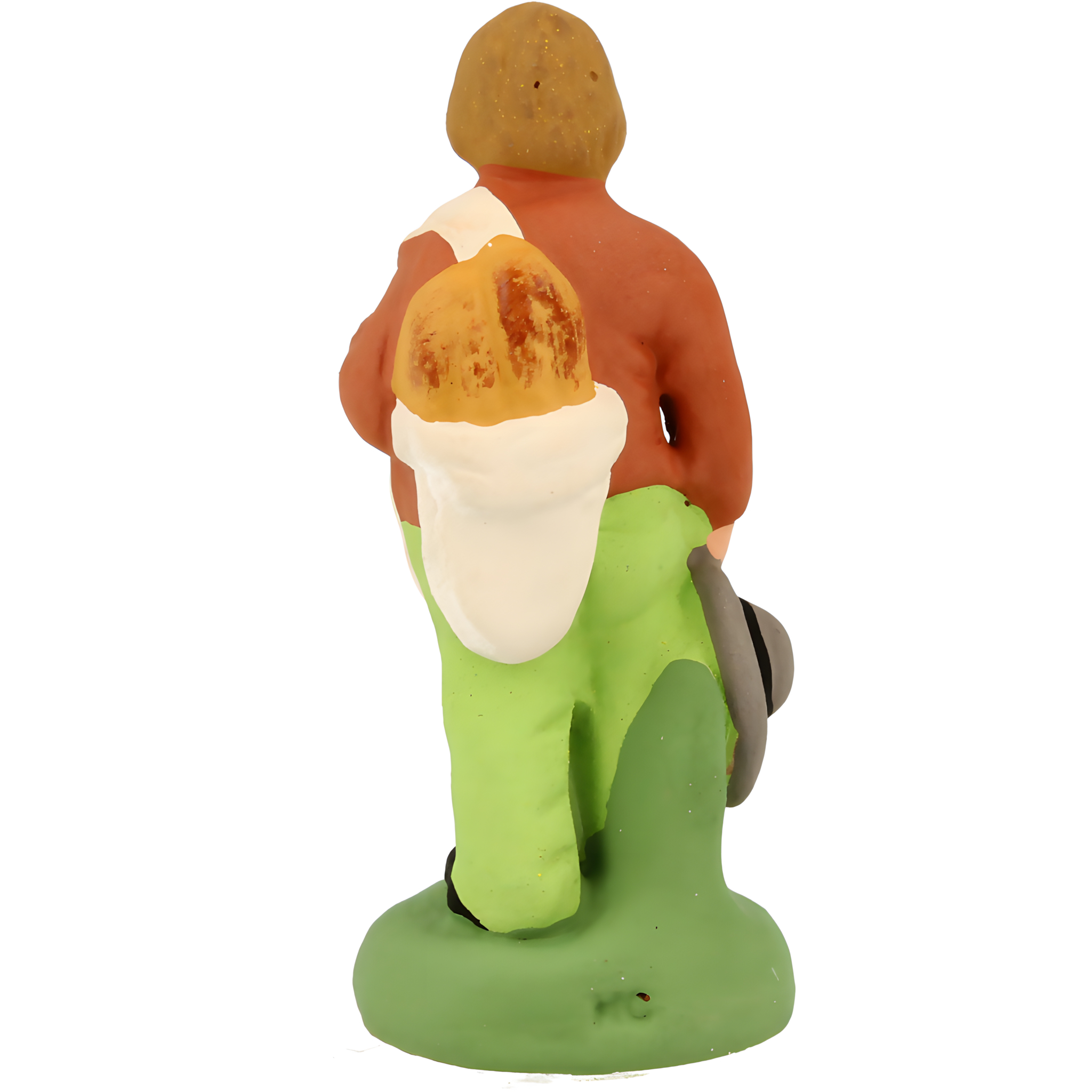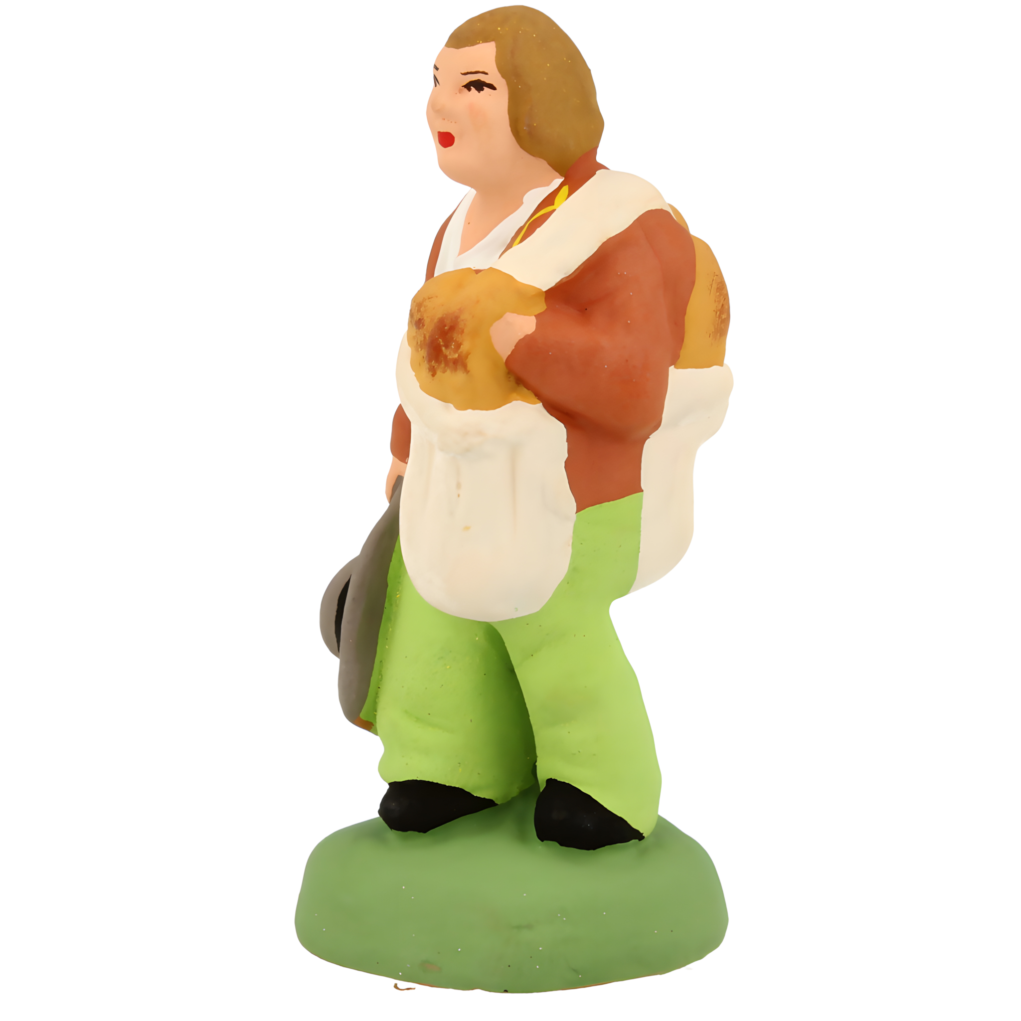 Apprenti du boulanger, il livre les miches de pain qu'il transporte dans un grand sac en grosse toile blanche. II tient son chapeau gris à la main.