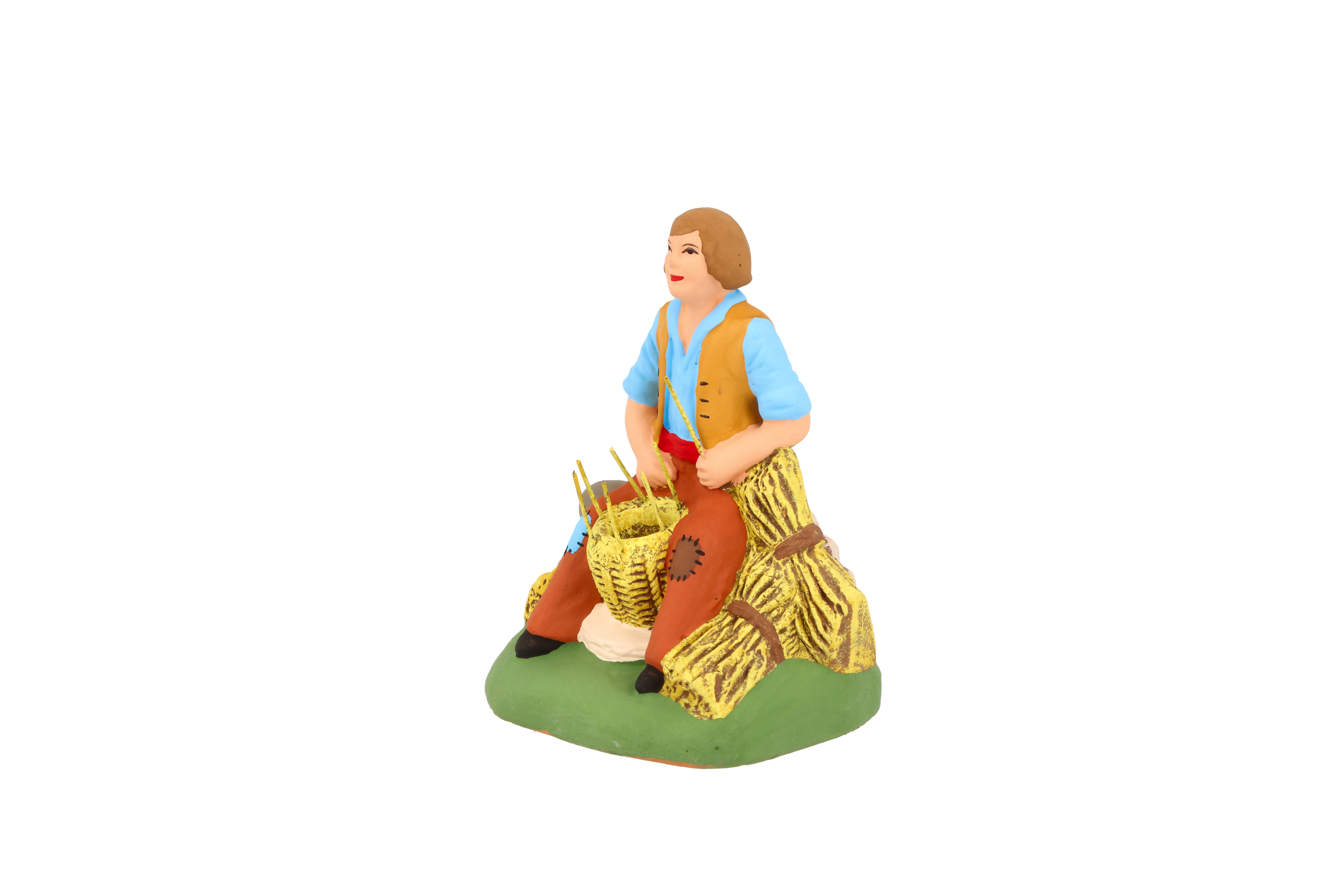Artisan assis qui confectionne une “banasto” (grand panier utilisé depuis l'Antiquité et largement répandu en Provence) avec de l'osier, rassemblé en gerbe à côté de lui. Son chapeau gris à large bord et une petite serpe pour couper les brins sont posés près de lui. Certains l'assimilent à Vincent, héros de “Mireille”, drame de Frédéric Mistral. La vannerie constitue un véritable commerce artisanal en Provence. On utilise l'osier, mais aussi le roseau et le jonc pour fabriquer des corbeilles de toutes tailles, des couffins, des nasses pour la pêche.