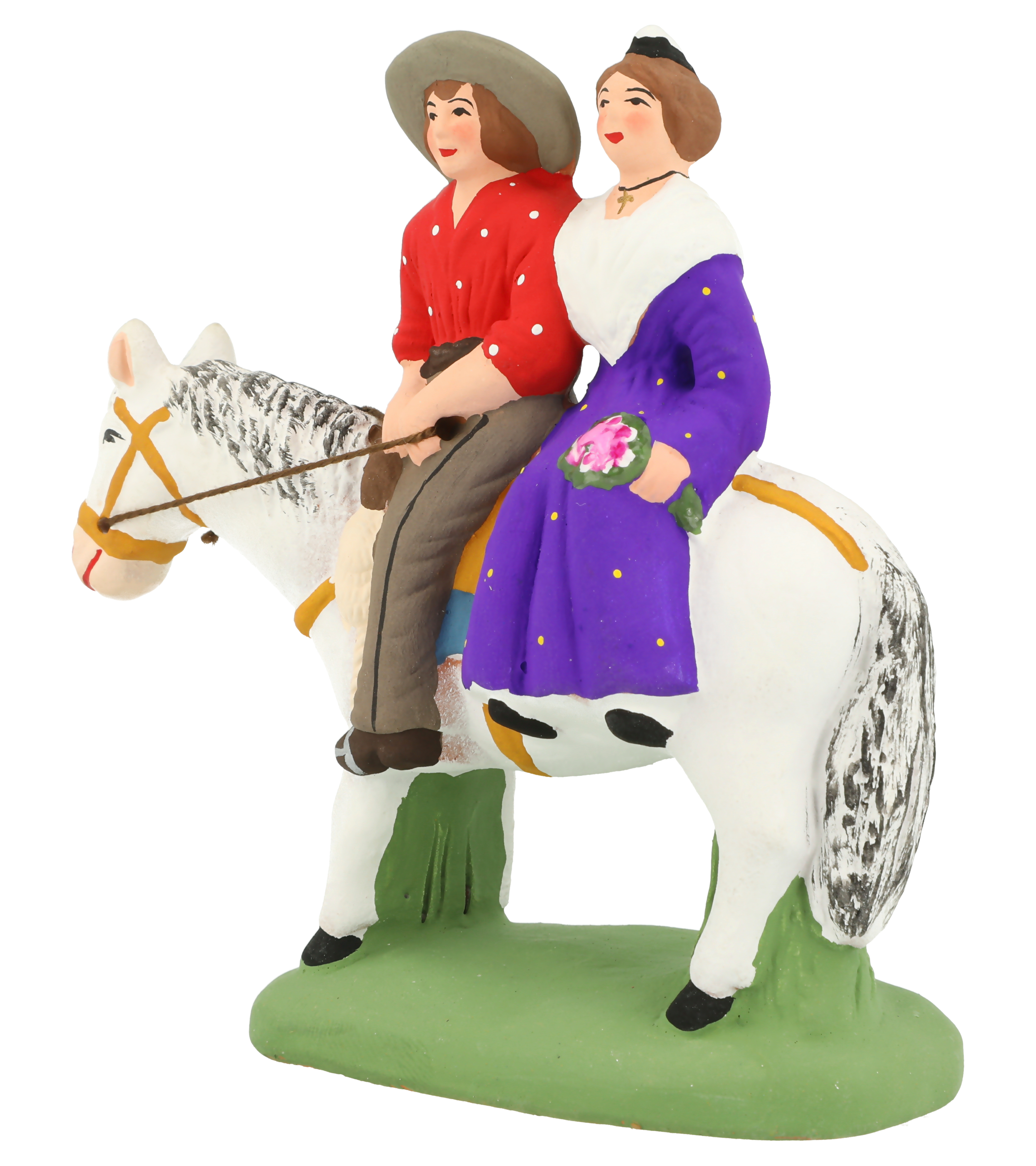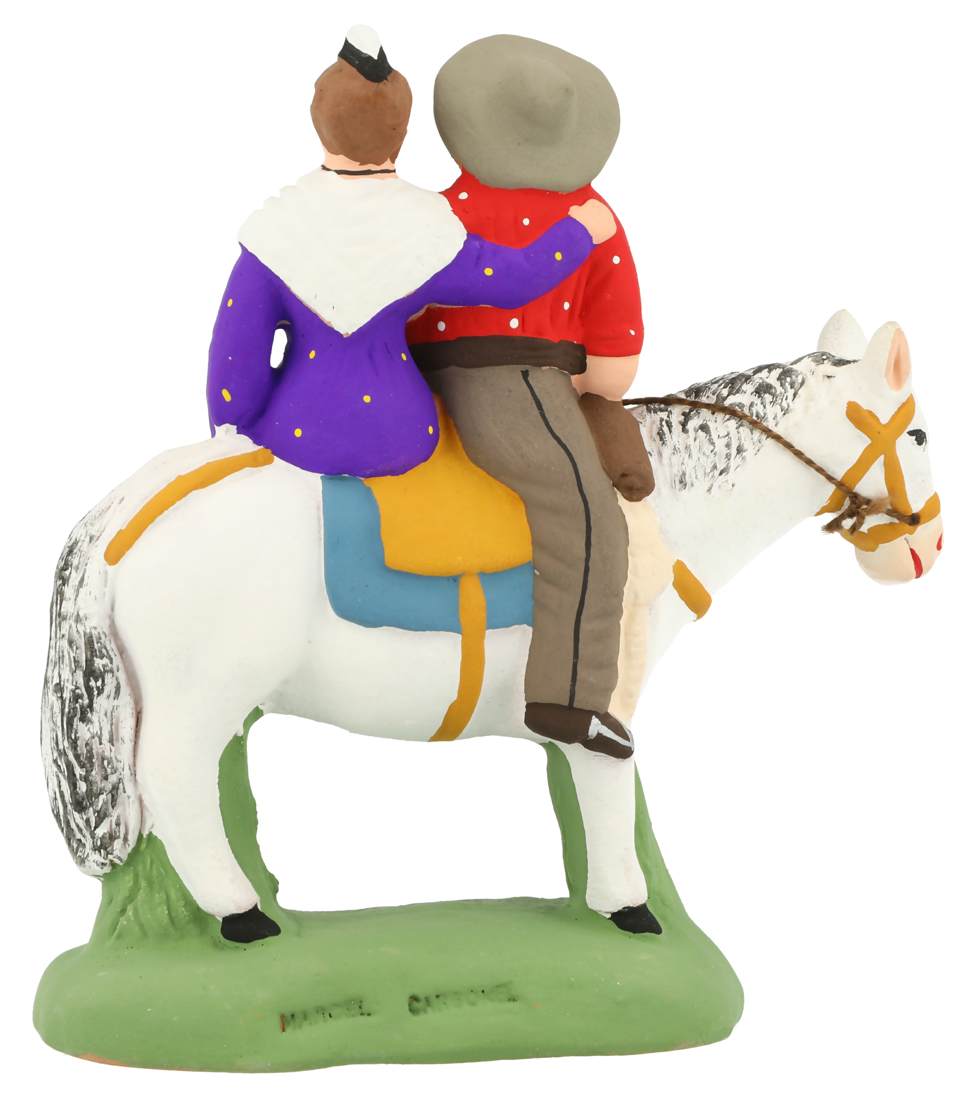Boutique en ligne > Provinces de France > Gardian & arlesienne à cheval chemise rouge & robe violette N° 3